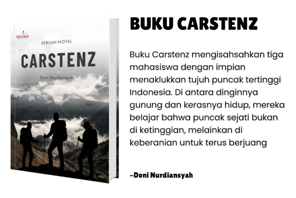 Novel yang sangat menarik dan inspiratif, dapat dijadikan salah satu motivasi untuk para pendaki. Novelnya bikin penasaran, seru banget – buku carstenz