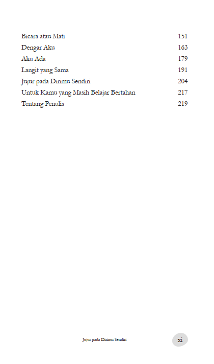 Jujur pada Dirimu Sendiri adalah kisah tentang manusia yang terlalu baik hingga nyaris hancur karenanya. Sebuah novel coming-of-age yang lembut namun menggigit, tentang perjalanan seorang pemuda menuju penerimaan, tentang keberanian mencintai diri sendiri setelah terlalu lama mencoba menyenangkan semua orang.