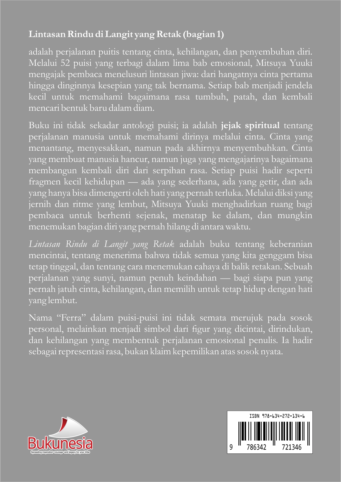 Buku Lintasan Rindu Di Langit Yang Retak ini diterbitkan oleh Bukunesia.