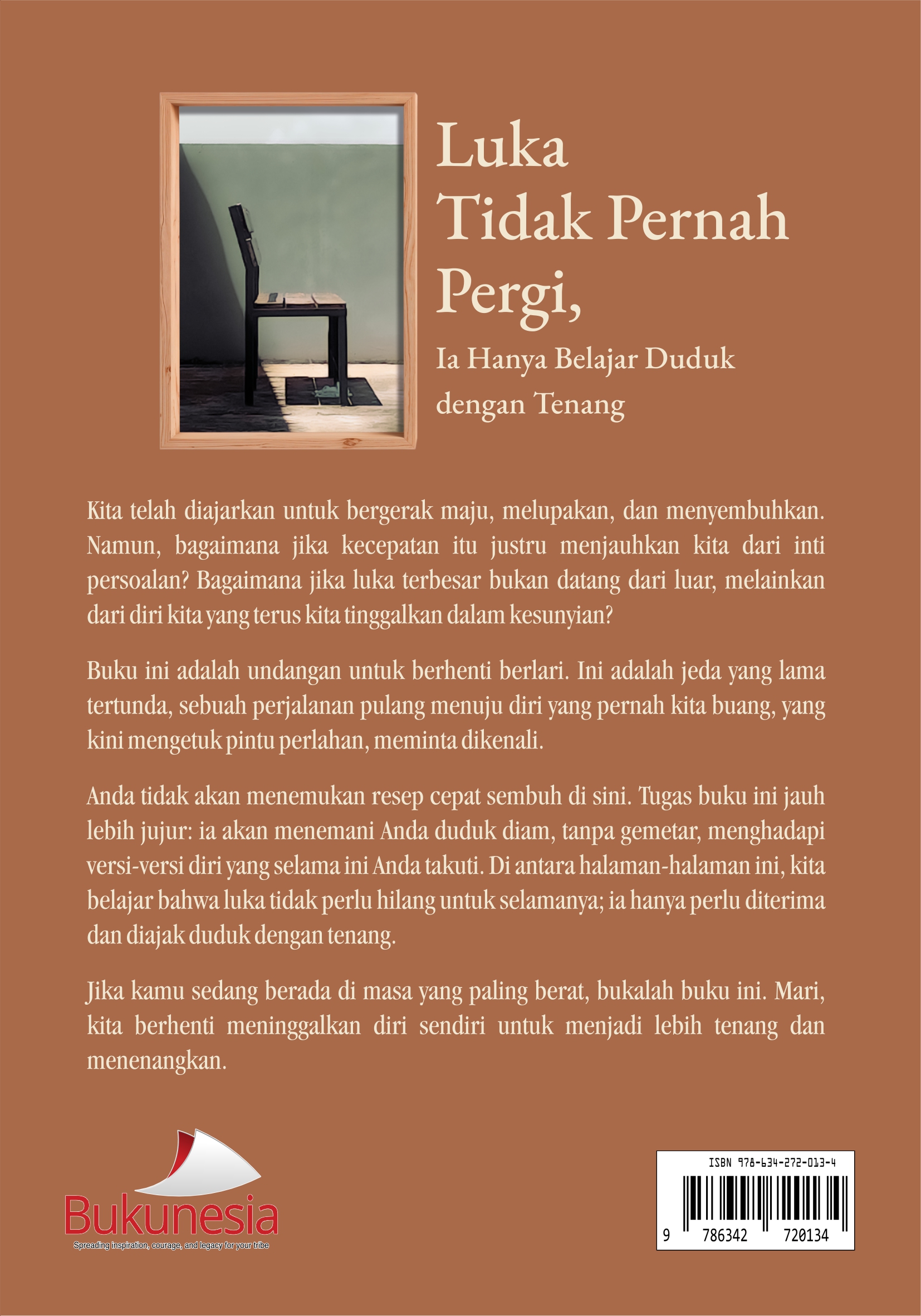 Buku Luka Tidak Pernah Pergi, Ia Hanya Belajar Duduk Dengan Tenang ini diterbitkan oleh Bukunesia.