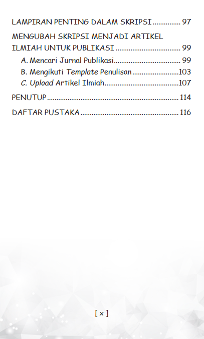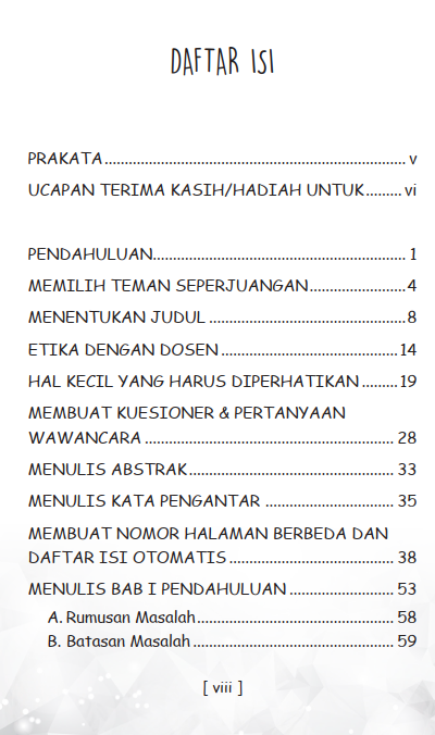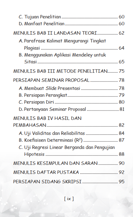 Buku ini mengajak pembaca melihat skripsi bukan sebagai monster yang harus ditakuti, melainkan sebagai tahapan yang dapat dilalui pelan-pelan. Dari urusan memilih judul, bersikap ke dosen pembimbing, sampai hal-hal kecil yang sering diremehkan, tetapi bisa jadi penentu kelancaran, semuanya dibahas dengan bahasa ringan dan dekat dengan keseharian mahasiswa. Banyak tips praktis yang biasanya baru disadari setelah salah jalan, di sini justru dibagikan sejak awal.