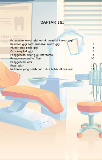 Melalui komik yang penuh warna dan mudah dipahami ini, anak Anda akan belajar semua trik penting setelah pemasangan kawat gigi. Dokter Evie akan memandu langkah demi langkah: mulai dari cara menyikat gigi yang efektif agar sisa makanan tidak ‘nyangkut’, teknik flossing yang benar, cara menggunakan dental wax untuk mengurangi rasa sakit, hingga daftar makanan wajib dan pantangan yang harus dihindari.