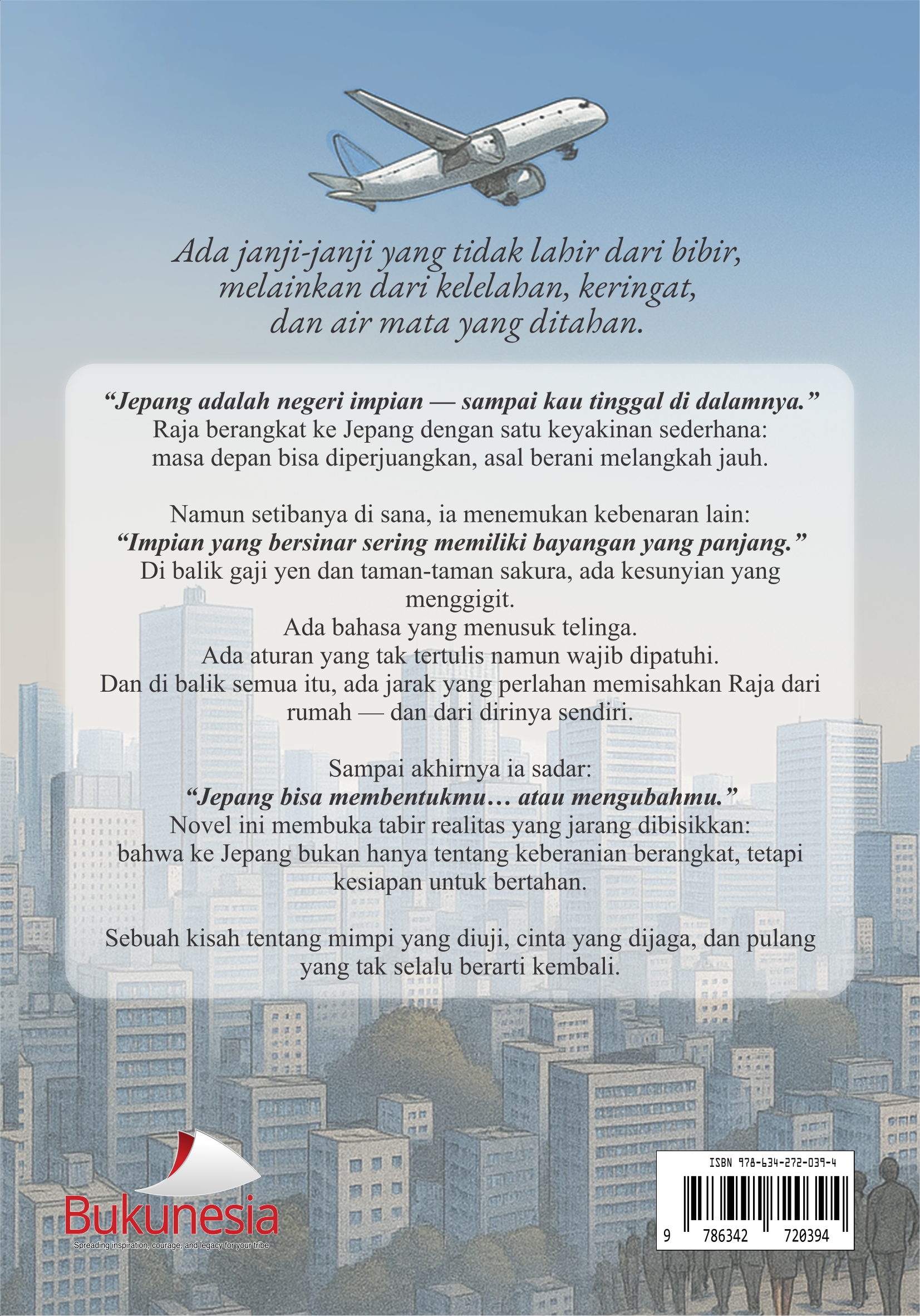 Raja, seorang Kaigo di Tokyo, memanggul beban janji kepada Dira, istrinya, dan Kenji, anak semata wayangnya, yang menunggu di seberang samudra. Demi masa depan mereka, ia rela menukar kehangatan rumah dengan kesunyian kota asing, hidup di antara rutinitas merawat lansia Jepang dan rasa hampa yang perlahan menggerogoti.