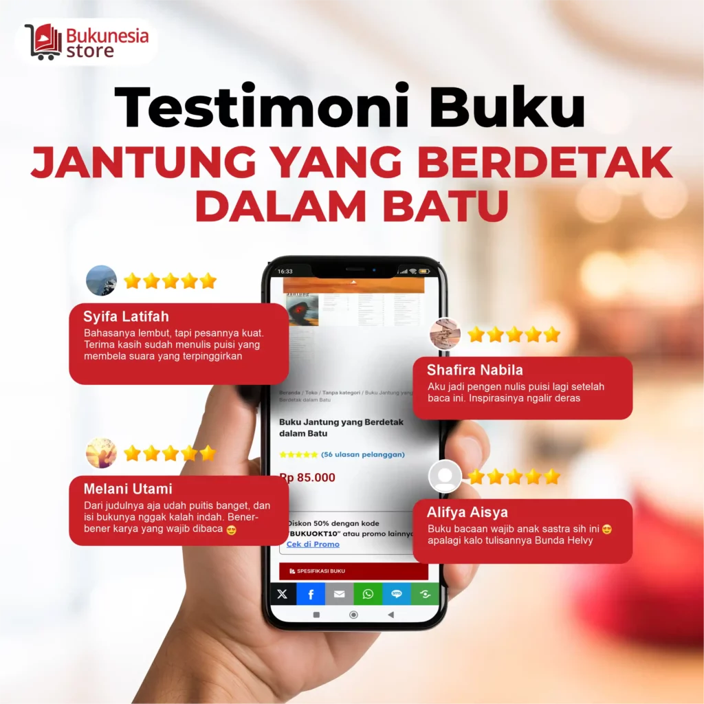 Rekomendasi buku yang patut kamu baca adalah Buku Jantung yang Berdetak dalam Batu karya Helvy Tiana Rosa.